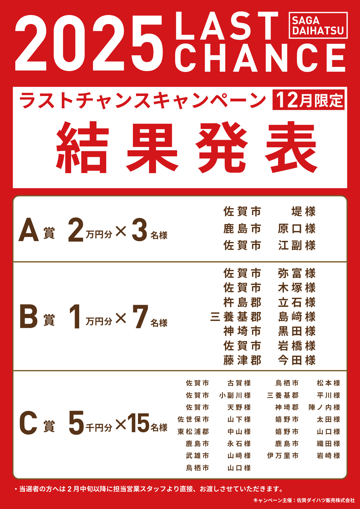 昨年12月に実施しておりました「2025ラストチャンスキャンペーン」につきまして、