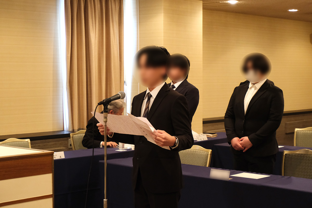 また、新入社員代表として選ばれた方が、これまでの歩みや社会人としての抱負を交えながら挨拶を行い、会場が静かに引き締まる印象的な場面となりました。