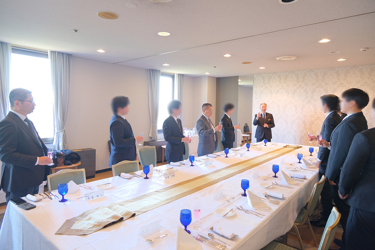 式典後は会場となったホテルにてコース料理をいただきながら、和やかな雰囲気でみなさんと交流を深めました。
