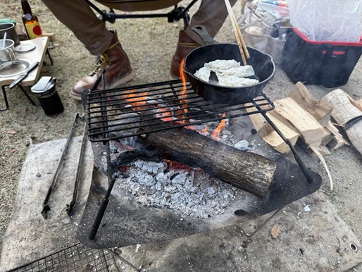 前回同様険しい道を行きながらたどり着いてテント貼ったりして餃子を焼いたりします。