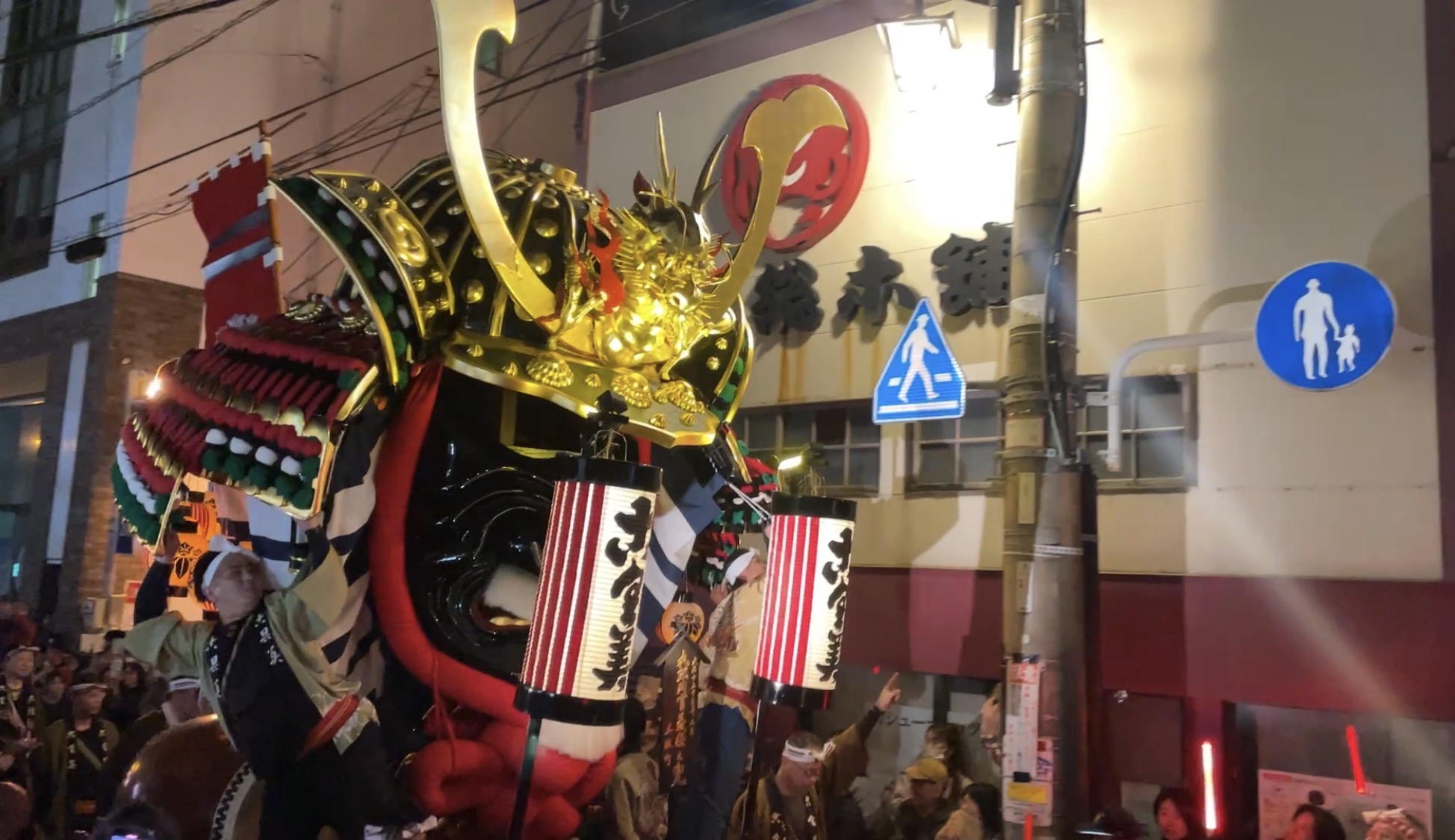 まち全体が太鼓と笛の音に包まれ、夜には提灯の灯りに照らされた