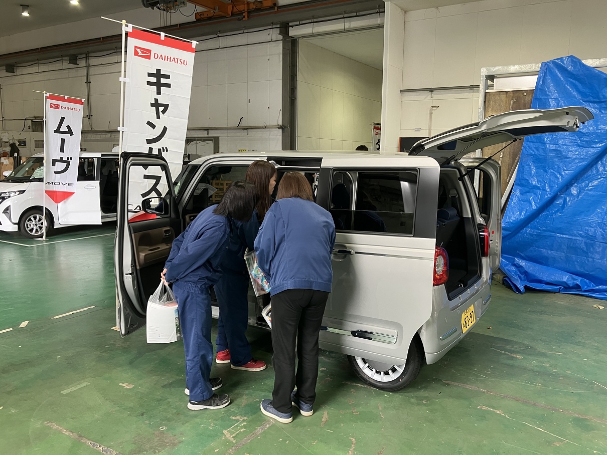 先日、唐津市にある脇山製作所さまにおじゃまし、工場の一角をお借りして ダイハツの軽自動車をゆっくり見ていただく機会がありました。
