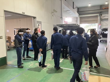 いつもはお仕事モードのみなさんも、この日ばかりは少しリラックスした表情。 「こんなに広いんですね」「後ろのドアがスライドで便利!」と、クルマを囲んで 会話がはずみます。